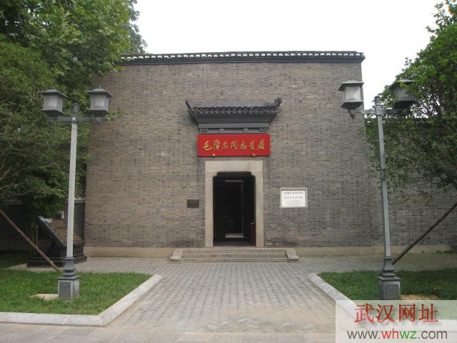 武昌毛澤東舊居位于武昌都府堤41號,是毛澤東1927年主持農講所工作并在武漢從事革命活動時的辦公地兼居所,是當時中共中央農委的所在地,也是毛澤東、楊開慧一家最后團聚的地方。毛澤東在這里完成了著名的《湖南農民運動考察報告》。舊居坐東朝西,磚木結構,青磚灰瓦,四周為硬山榍頭風火外墻,大門為單坡屋檐,墻體有門楣裝飾,朱紅色的板門上裝有門釘、門鈸。占地面積909平方米,建筑面積436平方米,院內三進三天井,內隔斷均為木質板壁和隔扇門窗,后檐有門,貫通呼應。地面裝有石質雙錢式地漏,廳堂中有亮瓦,采光充分,凈空很高,體現了對武漢氣候特點的適應,具有典型江南民居風格,體現了武漢地域建筑特點。正門額上木質紅色橫匾,上有郭沫若同志題寫的“毛澤東同志舊居”七個金色大字。